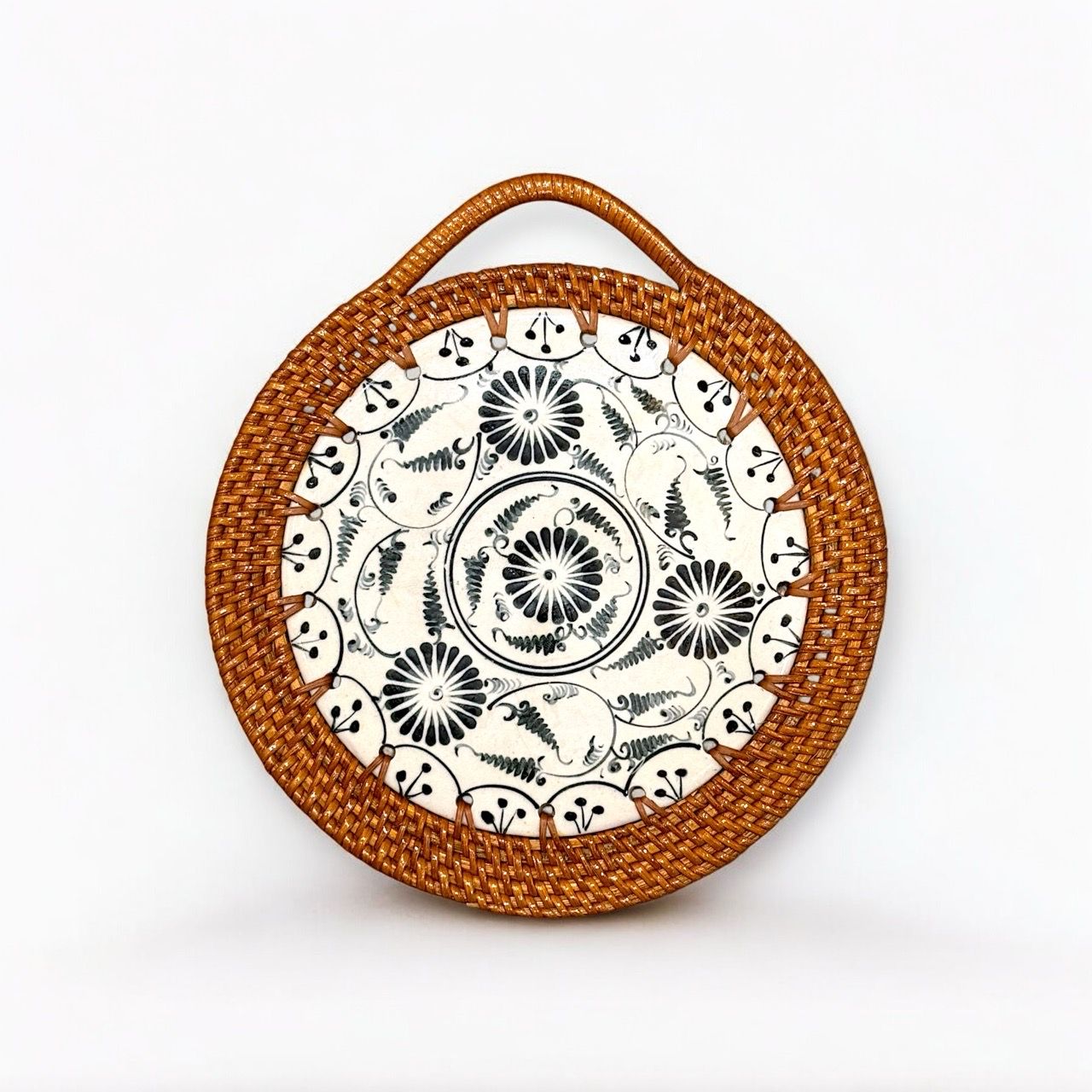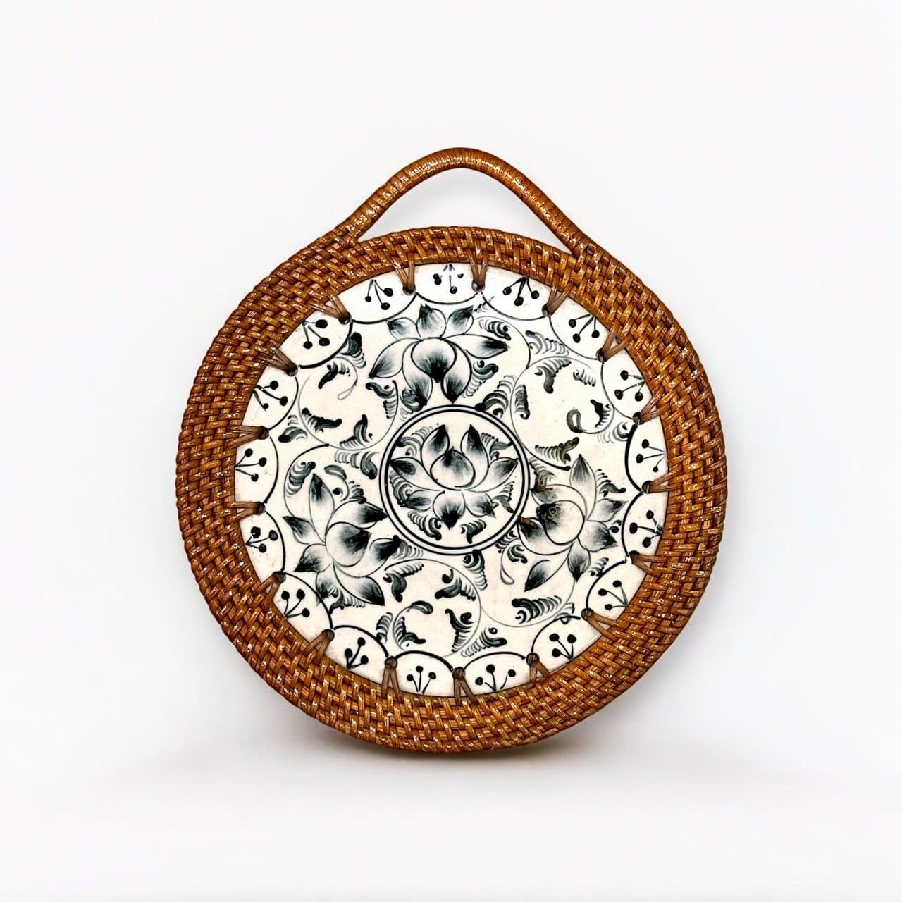 Lót xoong tròn mảnh sứ mây quai - D15